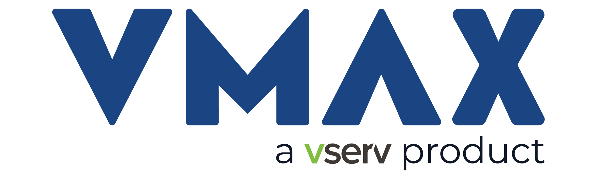 VMAX logo is a wordmark logotype where the typography style is used to represent the brand identity, with an integration of "A Vserv Product" representing that VMAX is a product by Vserv. The logo unit has one color tone used for the entire unit - blue.